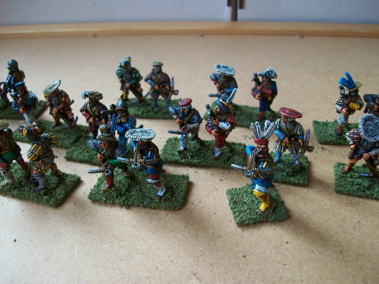 I have shown them here formed up in a block and also in skirmish formation. I am keen to add them to my other Landsknechts and get some photos. I think they will look better when shown with a few command figures and skirmishing amongst the corn fields.