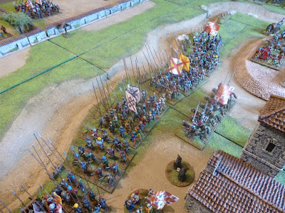 Based on what can be discerned from accounts of the battle the forces I used in the game are set out below. On the table top I really wanted to focus on the visual appeal of the game so you will notice that some of the units fielded are fairly large compared to what I normally game with. This didn't have much of on an impact on the rules, and this didn't matter anyway as I was playing through a historical battle and taking command of both forces. Anyone who has played Lion Rampant will know that the forces take on a life of their own once the action starts anyway which is frustrating and fun in equal measure for anyone trying to control them.